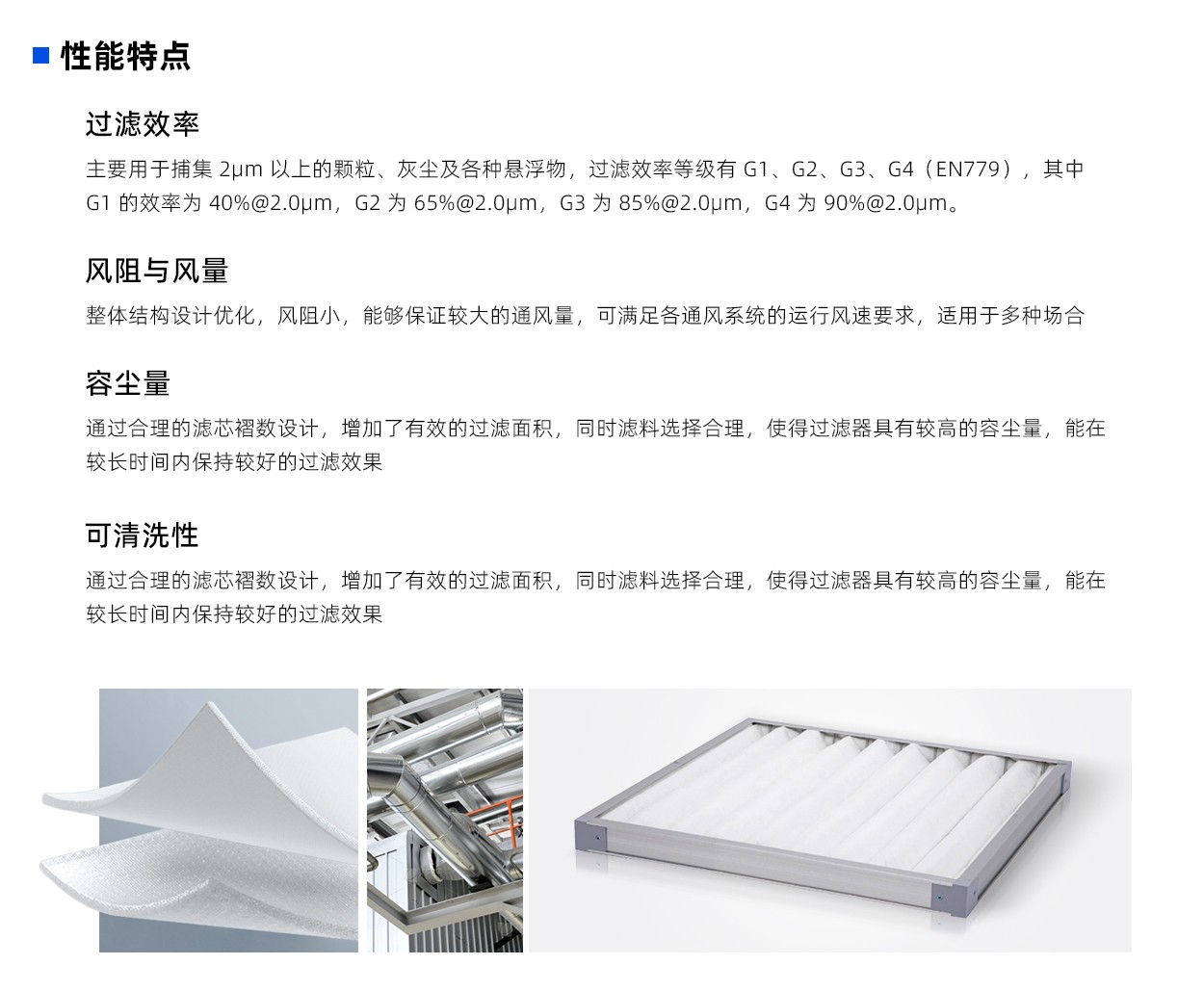 設計特點:◆容塵量高、透氣性好、過濾效(xiào)率高、使用壽命長。用途:◆空氣過(guò)濾係統預過濾,無塵室二級過(guò)濾,醫院、藥廠、電子廠、噴漆(qī)房較高潔淨空(kōng)氣要求等級的過(guò)濾係統,一般的大(dà)樓空氣過濾設備,高 效過濾器前級過濾。類型:◆袋式(shì)過濾器框架,鋁合金或不鏽鋼(gāng)濾料,合成纖維耐溫:80℃;相對濕(shī)度:100%特(tè)性:◆以鍍鋅鐵或鋁合金(jīn)為結(jié)構外框。每個濾袋間一金屬條固定,增加強度(dù),並防(fáng)止濾袋(dài)於高風速時,因風切之摩擦力(lì)而破裂。每個濾袋均有隔片平均分布於袋寬(kuān)中,防止濾袋承受風壓時過度(dù)膨脹、相互遮蔽,降低有效過濾麵積與效率。每個濾袋邊均采用超(chāo)聲波方式熔合,具有良好之氣密性及結合(hé)強度,不產生(shēng)氣或開裂(liè)。采用超細合成纖維以特殊織法製成,避免舊式玻璃纖維材(cái)料可能對人體造成的不適。濾材由PE+PP兩種化纖梯度組(zǔ)合,對(duì)微(wēi)米(mǐ)粉塵過濾(lǜ)效率特別良好,高捕塵率高透氣性、高使用壽命的特性。有(yǒu)35%、45%、65%、85%、95%五種效率的袋型濾網可(kě)以(yǐ)選擇。