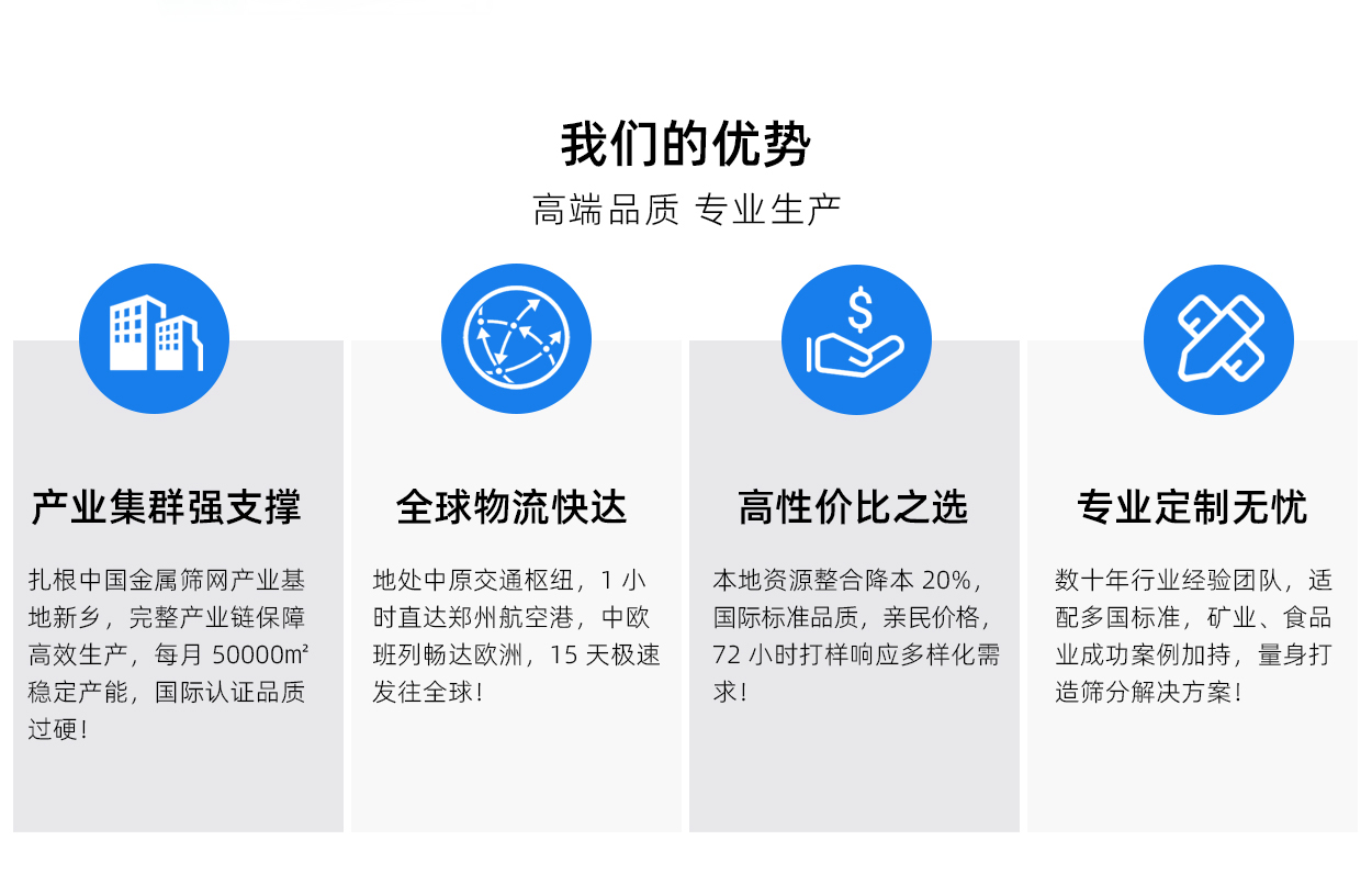 公司成(chéng)立(lì)於 2016 年,擁(yōng)有織網車間、濾器車間、集裝袋車間、篩網深加工(gōng)等 4 個車(chē)間,是專注於篩分和過濾產品的研發、生產、銷售和技術服務的源(yuán)頭廠家。