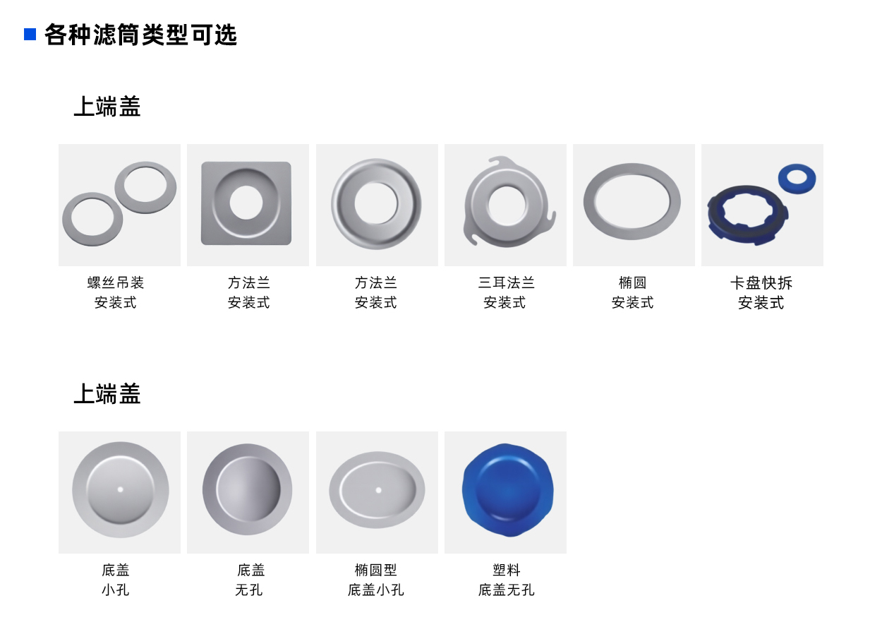 濾(lǜ)筒兩端端蓋使用硬質PU(或軟質PU)與濾組直接(jiē)澆築成一體,粘接牢固具有極高的密(mì)封性,確(què)保不會掉蓋和(hé)漏粉,並且避免了物料與金(jīn)屬(shǔ)直接進行接觸。